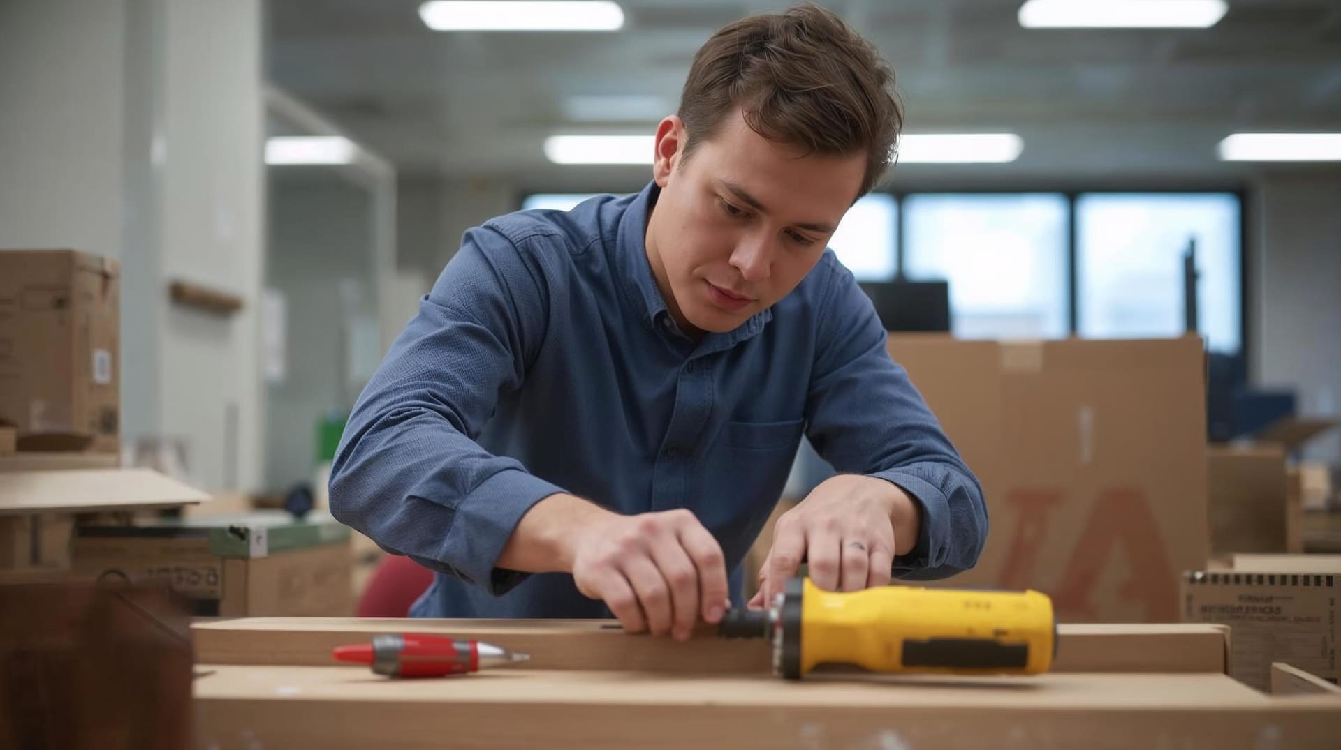 Monteren van meubilair in de nieuwe ruimte;